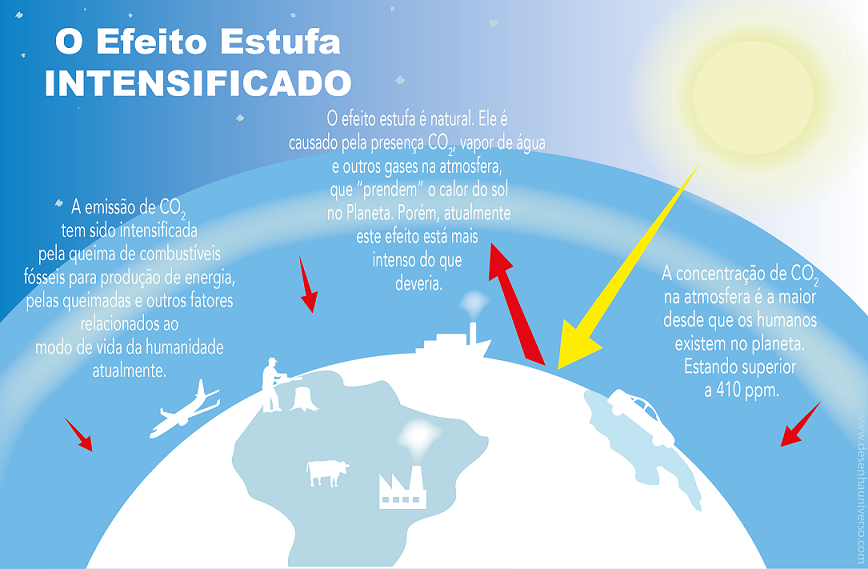 Com o aumento populacional no planeta, o consumismo humano e as alterações ambientais, o carbono tem sido emitido para a atmosfera em proporções que, digamos, são incomuns e desnecessárias. A emissão excessiva do carbono em forma de gás carbônico pelas atividades humanas é um dos principais fatores para o aumento exagerado do efeito estufa.