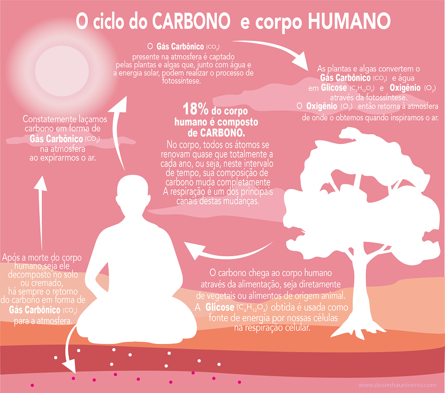 As combinações com carbono possibilitaram a composição de moléculas orgânicas complexas que dão estrutura física às diferentes formas de vida. É aí que entramos na história. O corpo humano é uma das muitas formas transitórias nas quais o carbono já teve seu fluxo.