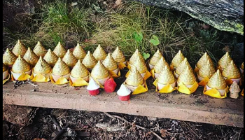 Cada estupa contém um tesouro cheio de vários objetos – pequenas oferendas, ou Tsa-Tsas, preenchem a maior parte do tesouro, enquanto joias e outros objetos preciosos também são colocados dentro. Acredita-se que quanto mais objetos colocados no tesouro, mais forte será a energia da estupa.
