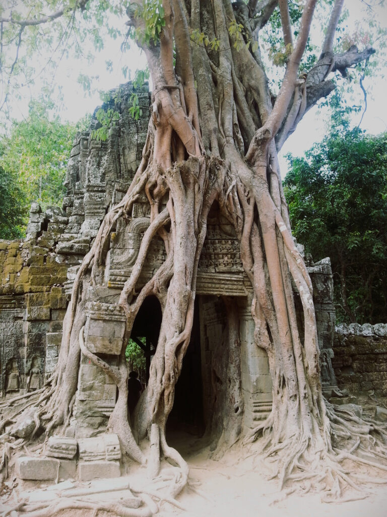 Não sei se eram as poucas horas de sono que tínhamos tido, juntadas ao calor delirante ou a beleza estonteante do lugar, mas o onírico embalava aquele cenário. As raízes das árvores envelopando os vestígios dos templos pareciam garras a escorrer pelas paredes. Me perguntava o que seus tentáculos tanto queriam engolir? E o que disso restaria para nós? Seríamos nós os futuros amantes daquela cidade que não-mais-era, servindo-nos, sem pressa, do que foi deixado como uma espécie de herança a um ente desconhecido?