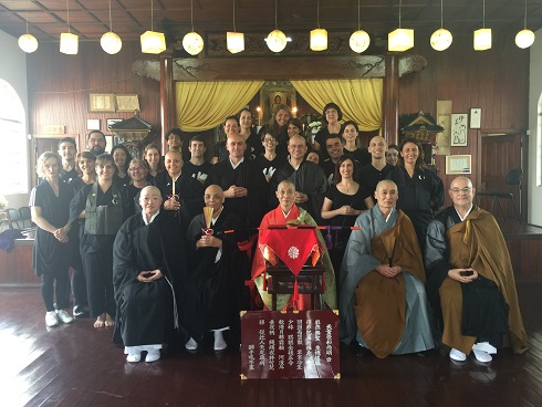 Tocam o taiko, o mopan … recitações e, levantam-se todos. Não contamos até 1, e já nós direcionamos para a porta de saída, quando o Jisha, amorosamente, piedosamente nos mandou voltar e observar os demais. Isso que já tínhamos passado em frente ao Sensei, sem nenhuma preocupação.