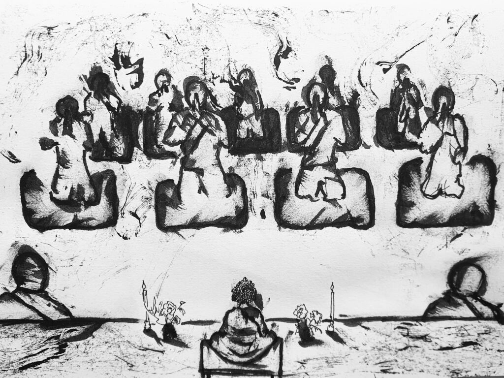 Em janeiro de 2014, sentados em uma sala de meditação com mais algumas dezenas de pessoas, nós repetíamos as palavras em páli acima, em uma cerimônia que aconteceu durante o nosso primeiro retiro de meditação. Vínhamos estudando de forma autodidata o Dharma desde a morte do meu pai, como Tamara acabou de relatar, mas somente ali, invadido por palavras de uma língua desconhecida, senti que nos conectávamos oficialmente ao budismo. Naquela época, eu ainda tinha dúvidas, mesmo assim repeti que tomava refúgio nas três joias por três vezes e a cada repetição as palavras saíram mais naturalmente e, de alguma forma, aquilo me emocionava. Costurava as histórias de Buddha que lera com o meu agora. Como nos ensina Saikawa Roshi: “Quando dizemos o Buddha, o Dharma e a Sangha, estes três tesouros, isso parece na nossa mente alguma coisa distante, um lugar muito alto. Mas isto é realmente aqui e agora. Não é um lugar distante porque tudo o que nós temos é apenas este momento.”[2]