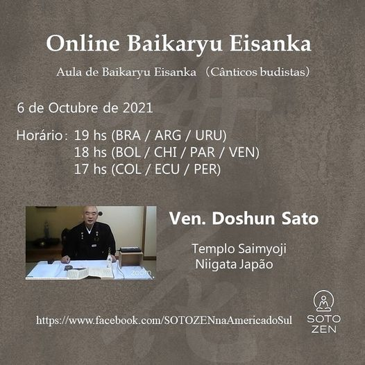 A Comunidade Budista Soto Zenshu da América do Sul 曹洞宗両大本山南米別院祥嶽山佛心寺, iniciou em 19 de junho de 2021 o curso online de Baikaryu Eisanka. As aulas são ministradas em japonês e traduzidas para o espanhol e o português.