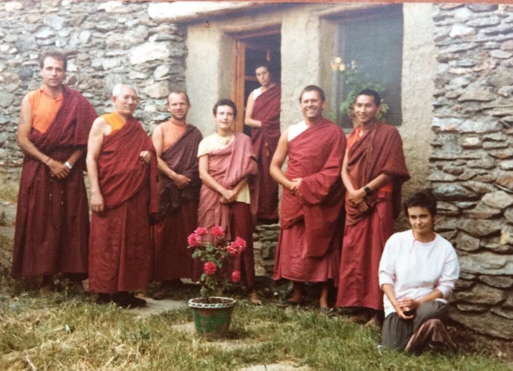 Bem, fui para o Nepal e me envolvi com esse outro país também. Eu via aquelas estupas, ia aos pujas. Desta primeira vez, porém, foi a época em que eu estava muito envolvido com minha namorada, e passávamos a maior parte do tempo fazendo trekking, essas outras coisas. Embora eu tivesse me conectado culturalmente com o budismo, não havia ainda uma conexão formal. E assim, quando saí da Ásia, pensei: “Voltarei ao Dharma”, com certeza. Eu tenho que pegar algum dinheiro, e voltar. Então trabalhei por um ano e depois voltei. Já era 1974 e fiz um curso no Monastério Kopan[3]. E foi aí que conheci Lama Yeshe[4]. Lama Zopa[5] era o responsável pela maior parte das aulas. Ele estava ensinando sobre os Reinos do Inferno durante as primeiras três semanas do curso. Três semanas, Reinos do Inferno, depois 8 dharmas mundanos, e aí como Atisha – o Grande Atisha – trouxe o Budadharma ao Tibete, etc. Primeiro o budismo foi para o Tibete a partir de Padmasambhāva, do século VII. Então as novas escolas de tradução vieram de Atisha. Das quais vieram os Kadampas, não os novos Kadampas. Existem algumas coisas modernas que são meio estranhas, mas delas surgiram os Kagyu e os Sakyas. E então, eventualmente, o Gelug. Mas, enfim, Lama Zopa ensinava sobre essas coisas o tempo todo, e as pessoas iam meio que enlouquecendo.