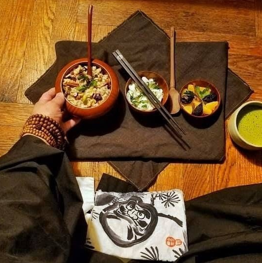 A regra no monastério é que o Tenzo quando vai comprar comida não pode comprar carne, alimentos de origem animal, produtos desse tipo, funiô como é chamado. Porém, há uma regra que está acima dessa, algo comestível, que seja doado ao templo, pode ser descartado. Às vezes os dankas (leigos) vão ao templo e levam doações de comida, e os monges tem que consumir, não importa o que seja, se trazem maionese, ovos, tem que comer. Pelo menos no monastério onde vivia essa era a regra, tinha que consumir. É proibido jogar comida fora, temos que comer o que eles nos oferecem.