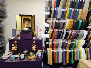 Em torno do templo, um cemitério, uma escola, uma cidade, costureiras que criam kesas, koromos e kimonos. Dentro, monges que os vestem em meio a incensos e recitações.