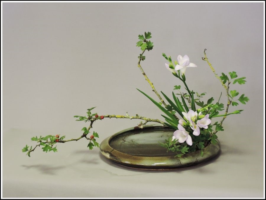 Em geral os arranjos são feitos com três ramos ou caules principais. O primário representa o homem. O secundário, que é um pouco menor, representa o céu. E o ornamental (único com flores) representa a terra. Busque por galhos e ramos longos lembrando sempre que o primeiro ramo é o maior de todos! Quanto as flores, procure por espécies que tenham simbolismos importantes como por exemplo: lírio da paz.