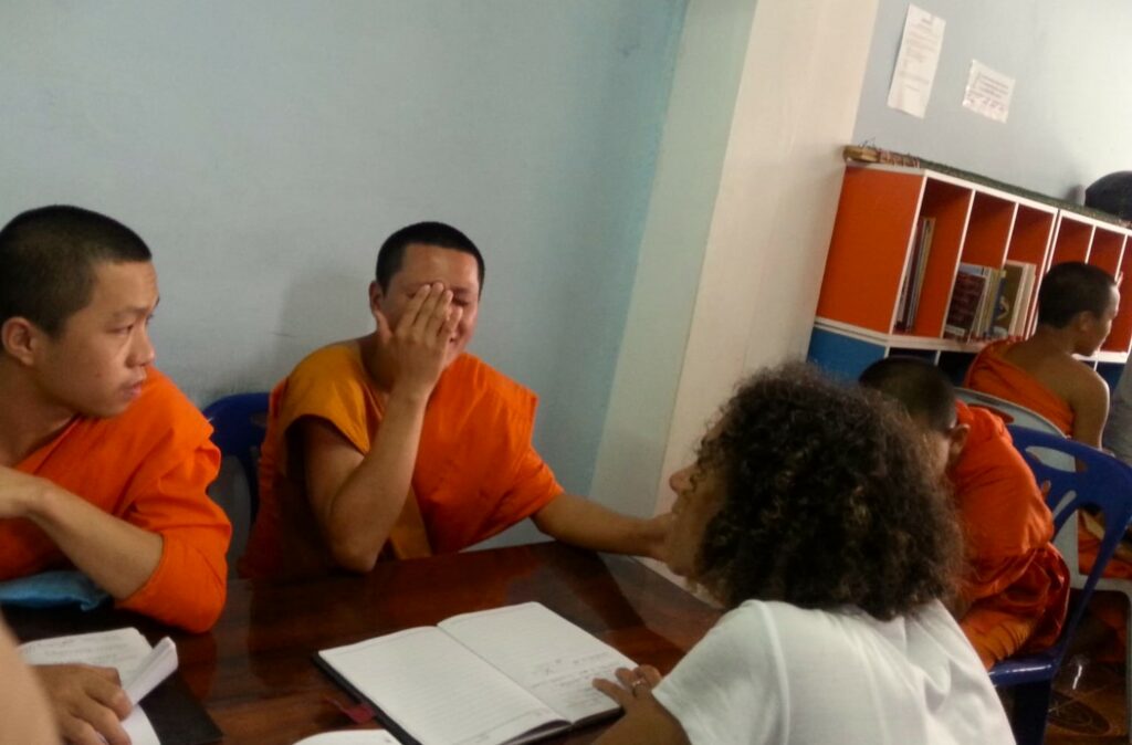Poucos dias depois, conseguimos um quarto na casa de um local, em que se hospedavam também uma pequena família japonesa e uma professora de yoga suíça. Nosso vizinho: um templo Theravada. Para cortarmos caminho, era permitido que passássemos pelo pátio dos monges.