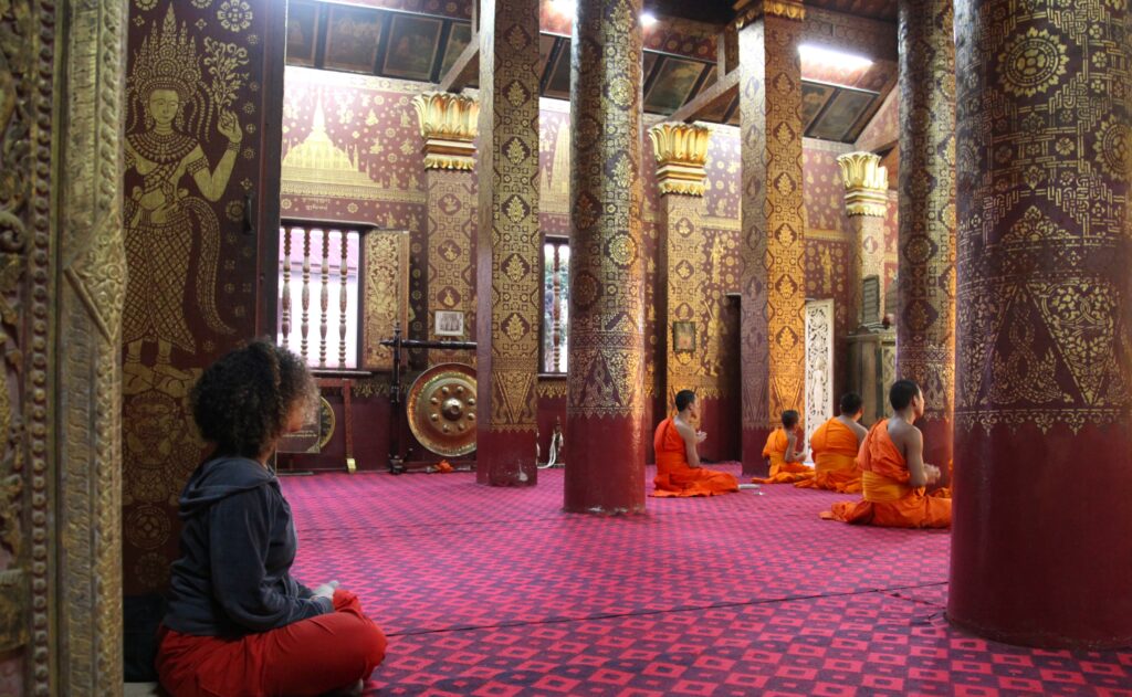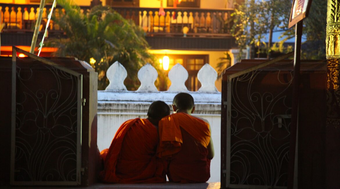Nossas tardes no Laos faziam jus à passagem pelo portal mágico de nossa chegada a Luang Prabang. Éramos dois dos raríssimos – quando não os únicos – ocidentais que participavam dos cânticos e das sessões de meditação com os monges. A cada dia, íamos a um templo diferente. O pôr do sol alaranjado se confundia com os mantos, os sutras em pali cantados, tudo cercado por mata, rio e nuvens.
