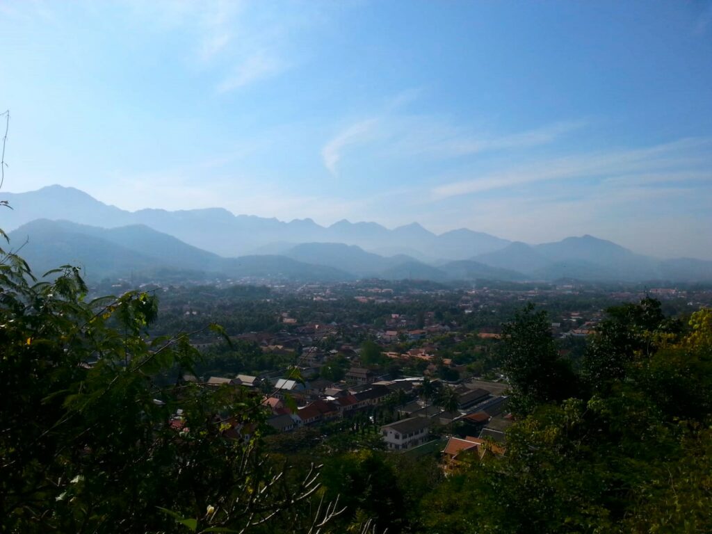 Elegemos Luang Prabang para um período em que não faríamos retiros. Fomos ao museu em que fica a estátua mais importante de Buddha do país (Phra Bang Buddha), flanamos pelas inacreditáveis cachoeiras de Tad Thong, experimentamos sticky rice de incontáveis restaurantes (um arroz grudento, que comíamos com as mãos, colocado em cestinhas), navegamos pelo Mekong, pedalamos para lugares onde o inglês não era língua franca, atravessamos quase diariamente uma ponte de bambu que é reconstruída todo ano no período de seca e é levada pelas águas do rio durante as monções, assistimos a uma peça de teatro em que os atores laosianos – em inglês – contavam sobre o folclore local, por fim, subimos a escadaria de 100 metros do Phousi Hill para vermos a Pagoda de pertinho e ganharmos 360 graus de vista da cidade. Alcançávamos o pico, meio esbaforidos, tivemos de subir a colina mais rápido do que planejáramos – logo acabaria o horário que tínhamos para a visitação.