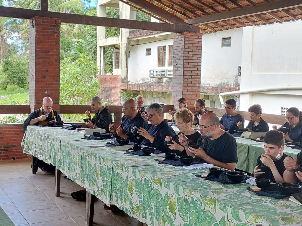 É conhecido dos praticantes budistas, em especial os do Daissen-Ji, que os retiros são oportunidades excelentes para experiências profundas de aprendizado na prática – parafraseando Genshô Sensei, é uma crise artificialmente criada para a mente, para ensiná-la a se assentar ao longo de um período de grande redução de estímulos externos. Para mim, contudo, o aprendizado possibilitado por aquele retiro começou antes mesmo dele se iniciar oficialmente, dentro de um avião. Sou residente na Bahia, entre as cidades de Jequié – no sudoeste do estado, onde trabalho – e Salvador, minha cidade de origem e de onde tomei o voo para João Pessoa. Ainda na aeronave, na escala em Brasília, recebi uma mensagem do monge coordenador da Sangha de João Pessoa informando que, já que eu me hospedaria no espaço da comunidade no dia anterior ao início do retiro, ele me daria carona uma vez que estaria no aeroporto no mesmo horário de chegada do meu voo para buscar dois importantes mestres da Soto Zen na América do Sul e que participariam do retiro em seus momentos iniciais. Junto com essa oferta, recebi também a informação de que deveria seguir à risca uma etiqueta muito específica ao encontrar-me com os Mestres. Imediatamente, fiquei apavorado e tive medo de cometer gafes imperdoáveis. Quando finalmente me encontrei com eles, percebi que não deveria fazer mais do que respeitá-los e tratá-los com a devida reverência, sem temê-los, afinal, eram homens simples e muito simpáticos. Se abraçarmos a simplicidade e o cuidado com o outro, e retirarmos o foco da atenção de nós mesmos, não haverá erro. Essa foi a minha primeira lição.