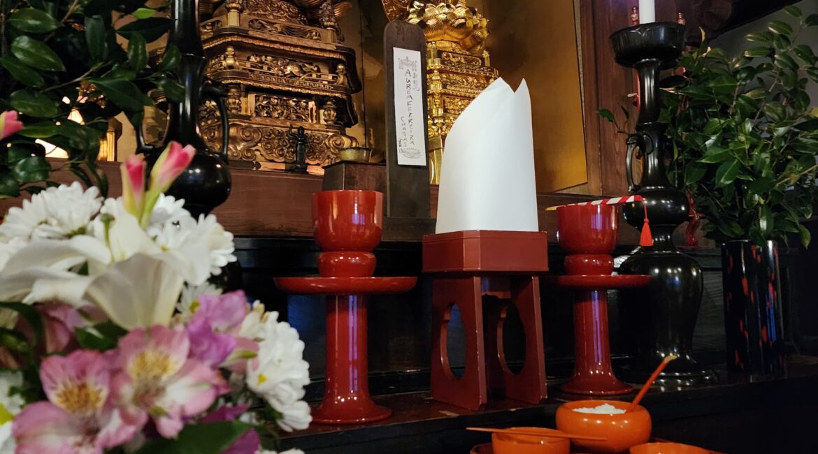 O ihai de minha avó feito por Dōchō Rōshi já está pendurado na porta do meu quarto aqui de Tōshōji.