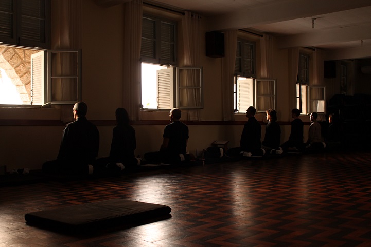 Esta é a prática característica do Soto Zen, na escola Rinzai senta-se de frente para os outros praticantes, no zen coreano se fazem ambas as formas.