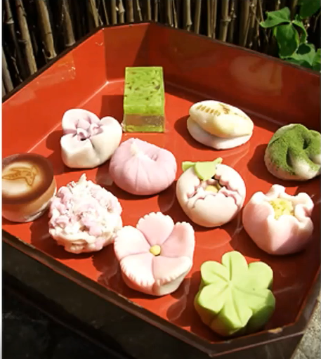 Alguns tipos de doces são produzidos somente na primavera, época em que os ingredientes estão disponíveis, e representados pela cor ou pelo formato da flor de cerejeira, mesmo acontece com as demais estações. Outra comida japonesa que marca a efemeridade é o sobá, um tipo de macarrão de trigo sarraceno, muito saudável, que tem uma versão fria e outra versão quente servida apenas no inverno. Todas as estações do ano, a temporalidade, são muito bem caracterizadas, seguem um fluxo, o que influencia muito no modo se ser.