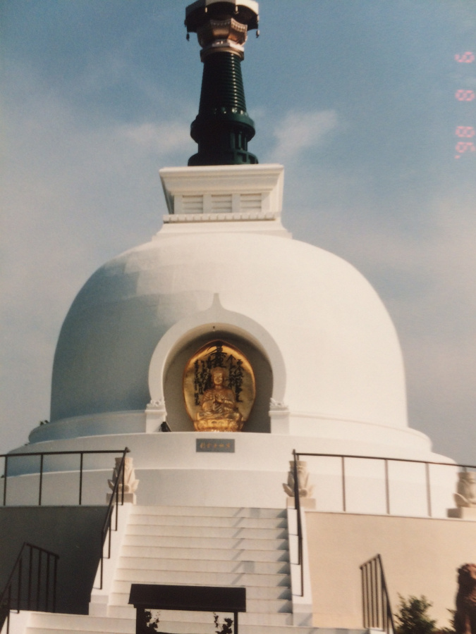 Adentrei a estrada Tokaido, neste trajeto o visual modificou completamente, as plantações de arroz e cítricas predominavam, era de uma beleza ímpar ver a região verde. Após um trecho de leve subida, quando estava descendo, avisto o topo de uma construção a uns 600 metros, meu coração deu um salto, era o topo de uma estupa. Fui me aproximando e a construção foi ficando cada vez maior e magnifica, após três horas e vinte minutos cheguei a meu destino, um local maravilhoso! Uma grande estupa budista, construída pelos camponeses da região para reverenciar o desperto.