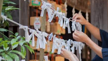 Durante a cerimônia nos templos, tradicionalmente as pessoas compram o Omikuji, uma espécie de oráculo, que ficam espalhados em uma caixa e que são escolhidos aleatoriamente. Nesse papel vem escrito a sorte da pessoa que escolheu. A tradição manda que depois de ler sua sorte, as pessoas amarrem o papel em paus, cordas, galhos, etc. em algum lugar no terreno do santuário. Por isso que encontramos centenas e até milhares de papéis pendurados nos galhos das árvores próximas aos templos.