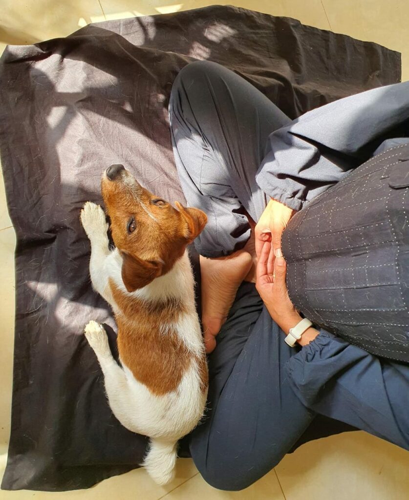 Após oito horas trancados no escritório-zendō, chegou o momento de passear com o nosso cachorrinho, o Zopa – que certamente estava achando aquela imobilidade toda já muito estranha. Saímos, meditação em movimento, cachorro e mentes na guia. Nós três juntos éramos um, mais do que nunca. As ruas em volta de casa vêm compondo o mesmo cenário para nossas caminhadas há 27 meses. Naquela tarde, entretanto, o vibrar do pé no asfalto subia à cabeça de forma quase palpável. O pôr do sol em tons pastéis compunha uma paleta inédita que dava cores ao perfume do ar. O vento já dizia que nada mais era do que a gardênia do vizinho. Que, por sua vez, toda úmida, naquele dia seco, delatava a presença do jardineiro. Quem, também, possibilitou a formação do barro grudado nas patinhas do Zopa, confessando nunca ter deixado de ser terra, e que, no fim das contas, é gás carbônico, é vento, é gardênia, são minhas narinas.
